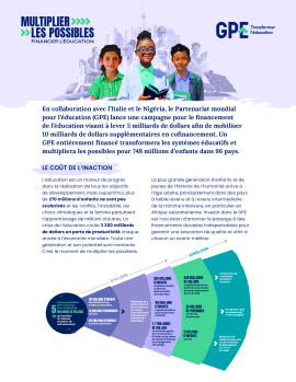 Le plaidoyer en faveur de l'investissement explique comment un GPE entièrement financé d’ici 2030, avec une reconstitution des ressources de 5 milliards de dollars, catalysant 10 milliards de dollars de cofinancement supplémentaire